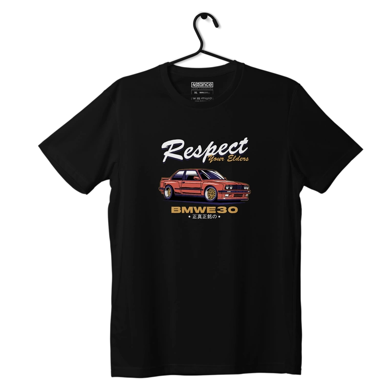 - Čierne tričko s potlačou BMW E30 Respect - ideálny spôsob, ako vyjadriť svoju vášeň pre motorizmus. Módne, autoritatívne a odolné. Objednajte teraz!