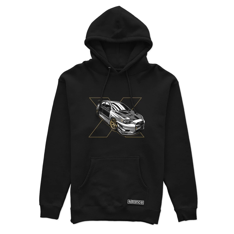 - Čierna mikina s kapucňou Mitsubishi Lancer EVO X - ideálna pre fanúšikov motorizmu. Štýlová, pohodlná a odolná. Vyjadrite svoju vášeň pre japonské autá.