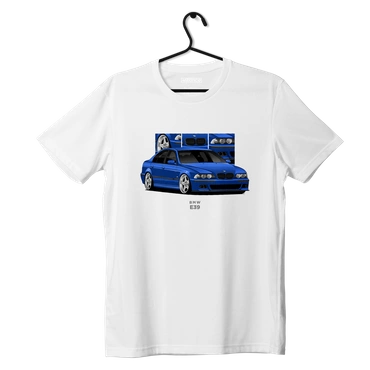 Biele tričko BMW E39 sedan modré.